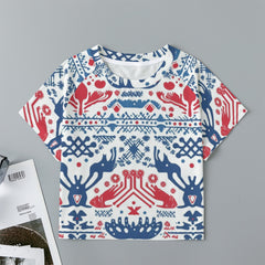 Eco-friendly All-Over Print Women's cropped Raglan T-shirt With Short Sleeve