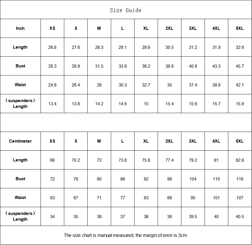 The size chart is manual measured, the margin of error is 3cm.